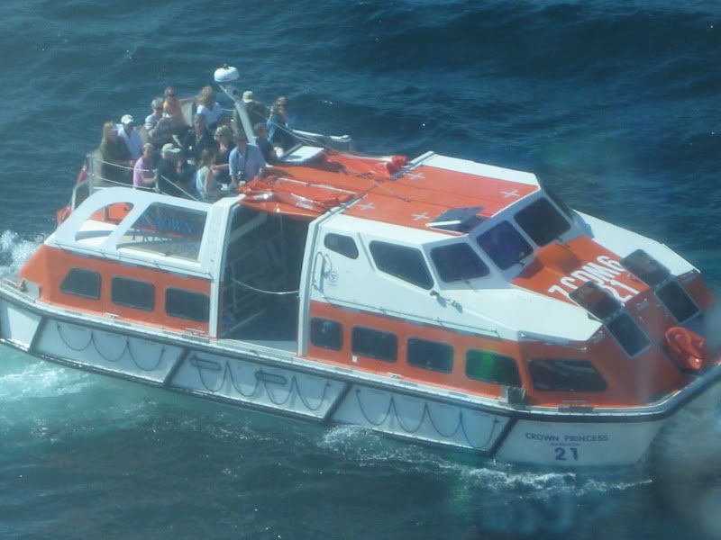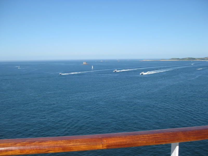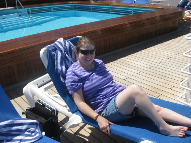 This port was a tender port (haul out the lifeboats) so those with booked tours got priority when it came to going ashore. Had we gone in, we likely would have only had an hour or so to look around before the last boat left for the ship. It was too rushy for us, and after a rough night, I was looking for some relaxation. Miracles of miracles it was finally HOT. Traveling north had been great, but the south finally offered some fun in the sun. The pools onboard came to life with laughing kids and adults alike. Still, Mom and I stuck to the "adult" pool at the stern of the ship (yes, I'm using the REAL term:-)) Even with suntan lotion I managed to get pretty crispy, but the warmth of the sun made it all worth it. Mom swam in the pool behind me, while I stared out at the fancy boats that were zipping across the water to get an upclose view of the ship. I had fun waving at them from my perch above:-)