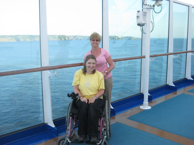 I would have given anything to ride on top of the boat on this hot, sunny day. The Princess crew would have had a heart attack watching me climb up there sans wheelchair. Anytime I moved, they were hovering a foot away. SO sick of it by the end of the trip. There's help and then there's going overboard. Hmm..going overboard, interesting idea...